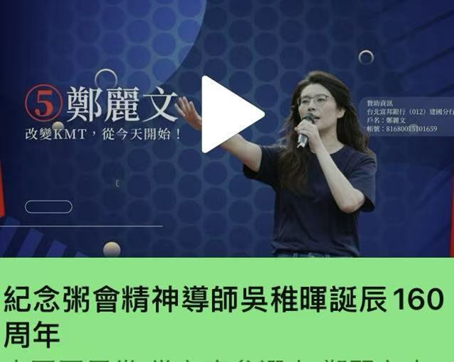 黨若無志,人當挺身;國若失魂,士必提筆。此刻正確的選擇,不只是主席改選,而是本黨的未來、中華民族的方向,生存路線的抉擇。共襄斯舉「復興女俠」始出,共促民族復興結語一句曰:「唯一支持鄭麗文,國民黨才會有救,國人同胞也才有一綫希望,中國之命運才有前途可言。」